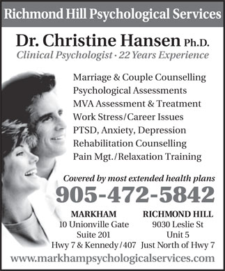 YORK REGION MENTAL HEALTH RESOURCE LIST Richmond Hill 905-780-9622 Treasures 905-883-5122 Ontario Association for Marriage and Family Therapy 1-800-267-2638 ON Psychological Association (psychotherapist referral) 416-961-0069 or 1-800-268-0069 ... View This Document